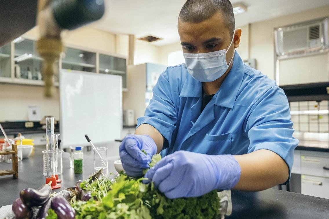 The new material he invented comes from rotting fruits and vegetables. It absorbs UV light from the sun and converts it into electricity.