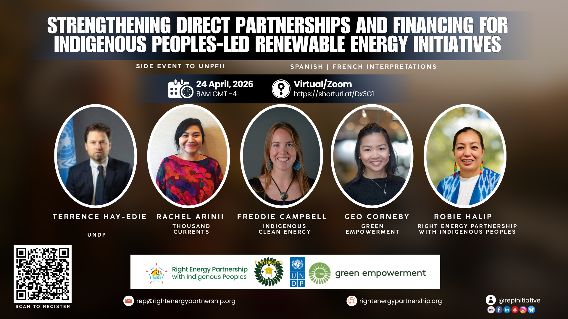It is within this context that the Right Energy Partnership with Indigenous Peoples (REP), together with TONIBUNG, the United Nations Development Programme (UNDP), Green Empowerment, and Thousand Currents, will convene a virtual side event during #UNPFII.
